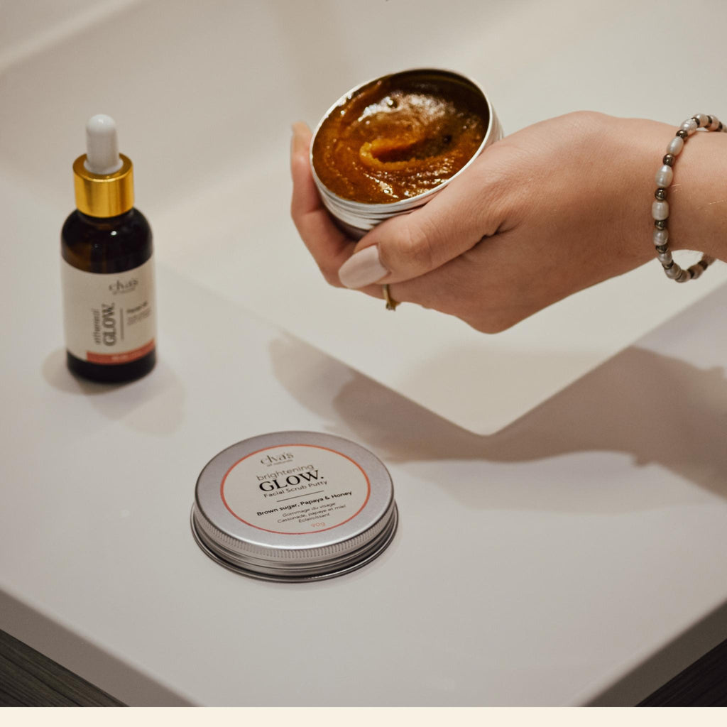 GLOW Facial Scrub Putty is a 3-in-1 exfoliating, enzymatic & hydrating treatment that feels like soft candy in your hands — and transforms your skin like a professional facial.