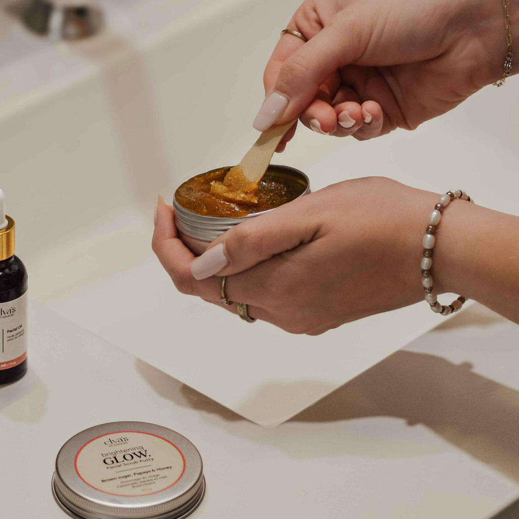 Made with brown sugar, papaya fruit enzymes, and raw organic honey, this natural putty gently dissolves dead skin cells, buffs away dullness, and deeply nourishes — revealing visibly smoother, brighter, more even-toned skin.