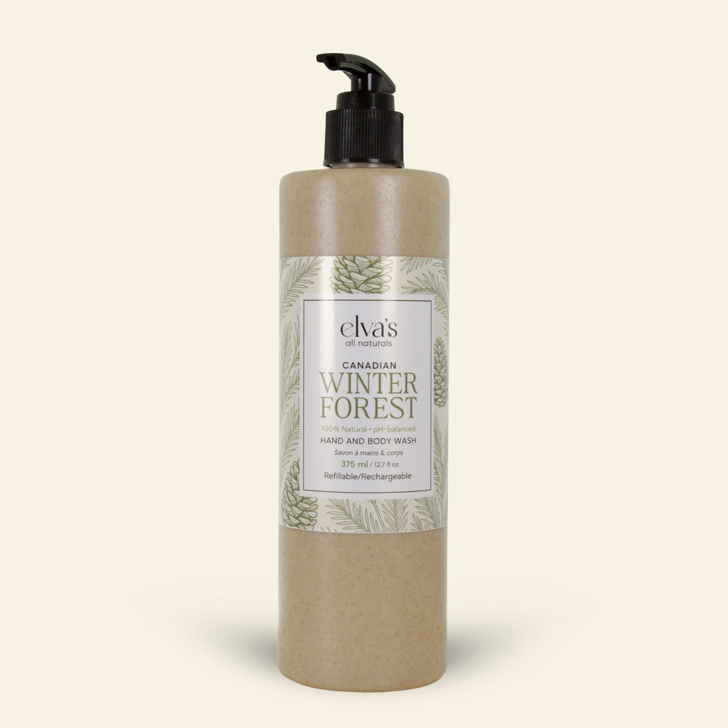 Customers have expressed high praise for the Canadian Winter Forest Hand & Body Wash, particularly commending its natural and refreshing scent that transports them to a winter forest. They appreciate the gentle and non-drying cleansing properties of the soap, as well as its eco-friendly packaging and refill options. Many customers have mentioned that the scent is not overpowering and is suitable for sensitive skin. Overall, customers are delighted with the product and highly recommend it, with some even expressing their intention to repurchase.