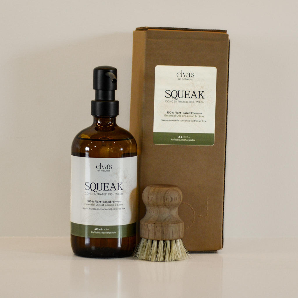 SQUEAK is a highly concentrated, 100% plant-based dish soap that cuts through grease with just a drop — leaving your dishes squeaky clean and your hands soft. Made with organic Soapwort herb (nature’s own soap) and pure lemon and lime essential oils, it’s biodegradable, grey-water safe, and gentle on your skin.