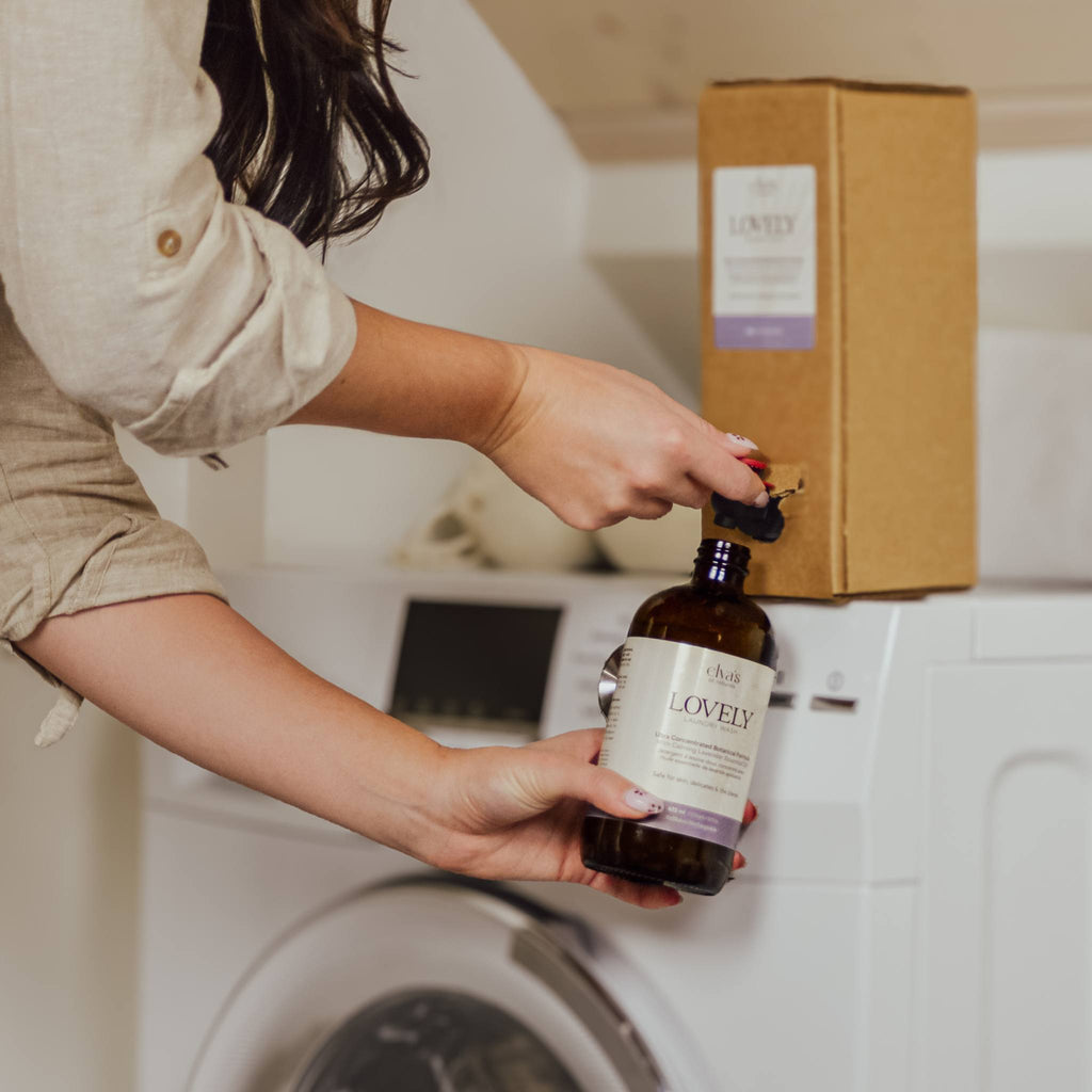 🪻 LOVELY (1.5 L Laundry Wash) – Choose Lavender or Unscented. Ultra-concentrated at just 2 tsp per load, delivering up to 150 loads per box. Gentle, plant-based, and pH-balanced for skin and fabric safety.